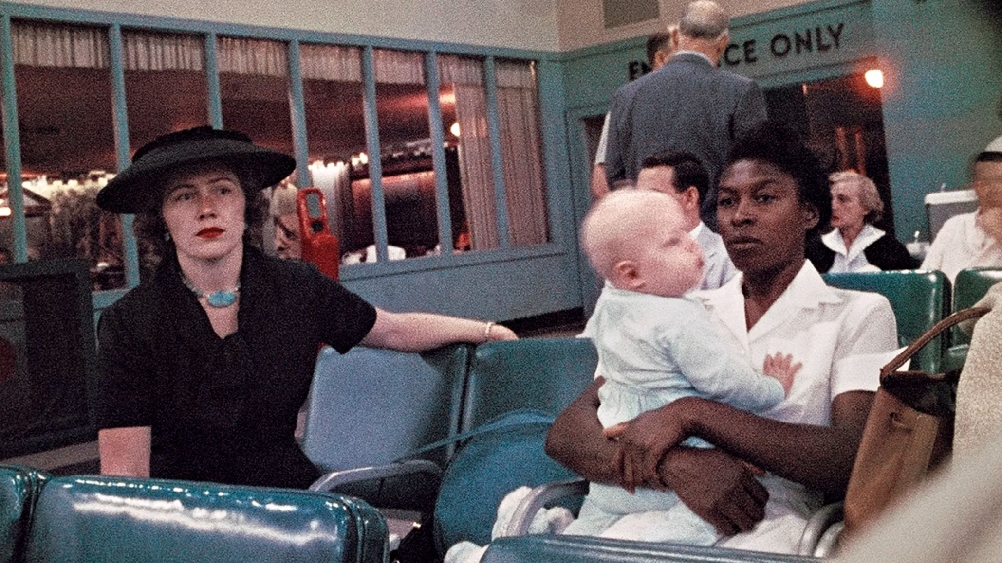 The scale of the works on present right here renders all of them the extra highly effective. Outside Looking In, taken of Black youngsters trying via metal mesh at white youngsters in a playground in Alabama in 1956, is emotive and placing. Department Store and Mr and Mrs Albert Thornton really feel virtually too intimate to view.