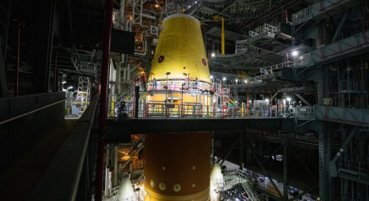 Teams have additionally used the time within the VAB to exchange batteries all through the automobile and deal with a separate seal difficulty on the core stage’s liquid oxygen gasoline line.