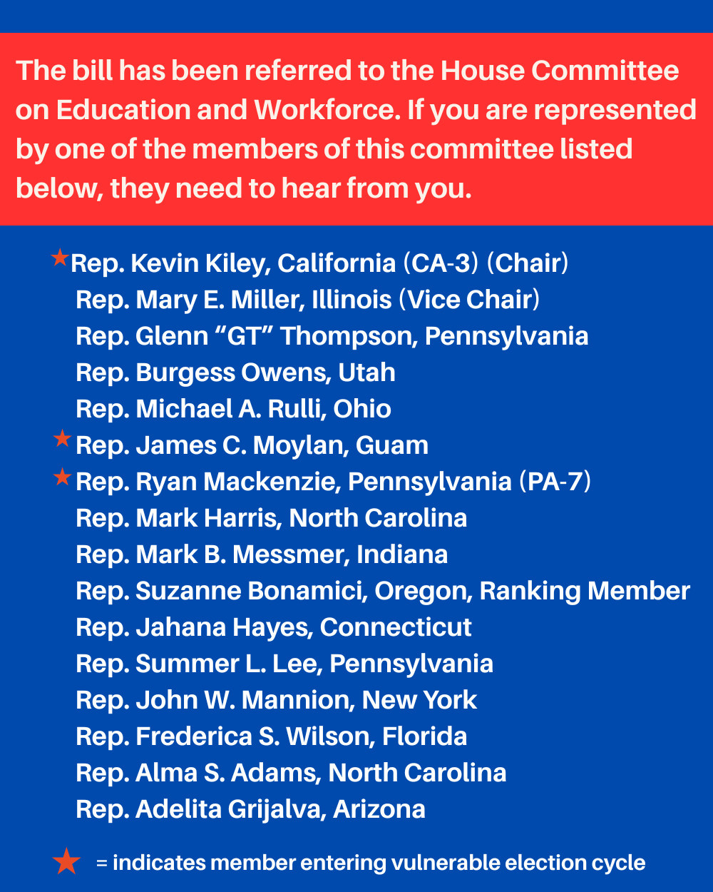 • If you might be represented by somebody who sits on the Education and Workforce committee, name them and remind them that censorship is un-American.