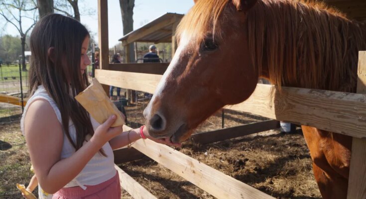 The petting zoo remained one of many greatest attracts. Families gathered round enclosures to satisfy rabbits, goats, and different pleasant animals. One little woman leaned in to provide a rabbit a delicate kiss, whereas one other youngster giggled as a goat nibbled feed from his hand. Nearby, a younger customer fed a affected person brown horse by way of the fence, concentrating exhausting because the horse’s tender muzzle brushed her palm.