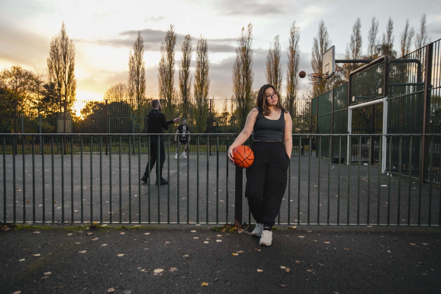 4) The musician, Celia Grace, launched an EP referred to as Sports and needed some images that mirrored the title. I had the concept of an out of doors basketball court docket and after we arrived there have been two guys on court docket. I requested if we might have Celia pose as they performed within the background … and the solar was setting simply properly and for this reason I selected this photograph over one other I’ve of Celia Grace shut up and low angle.