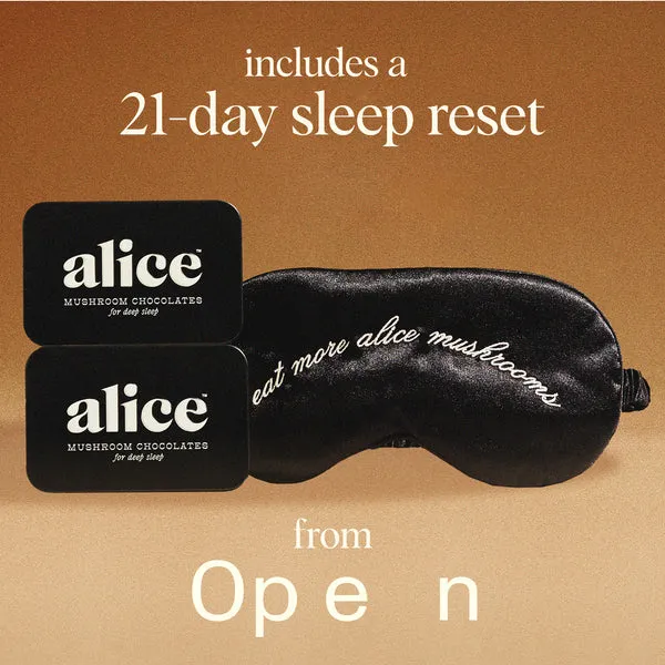 Get an additional 15% off and a free eye masks and Open’s 21-Day Sleep Reset program while you get a subscription to Alice’s bestselling purposeful mushroom sweets for sleep.