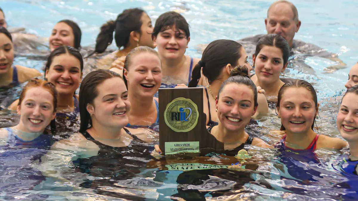 Barrington women swim tea rejoice state title on Saturday, March, at Brown University.