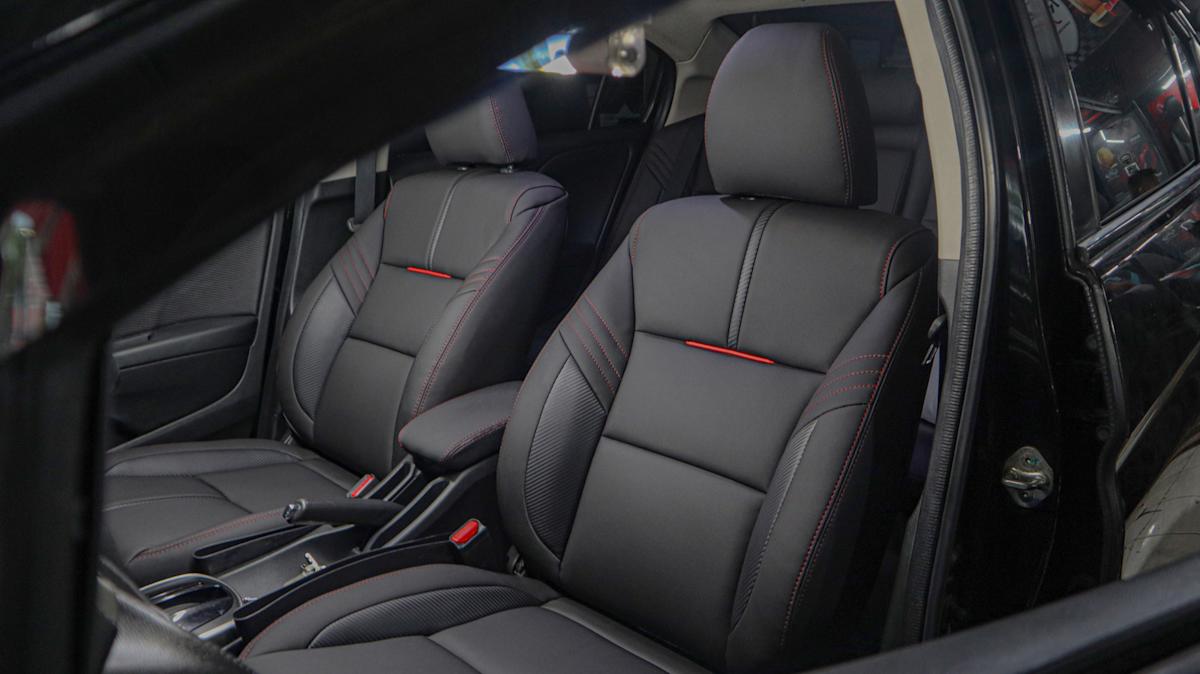 A photograph of a black automobile seat inside a automobile with black inside – PH888/Shutterstock