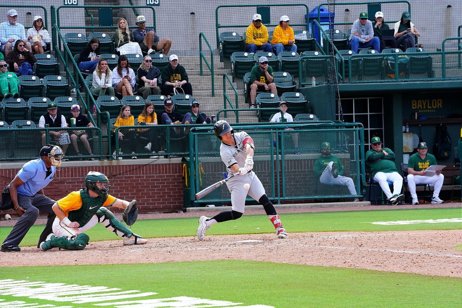Air Force mounted a late rally within the high of the ninth, plating three runs to drag inside one. Back-to-back singles from Elmore and Blake Campbell put runners aboard earlier than Ben Niednagel moved them over with a groundout. A throwing error by Baylor’s shortstop allowed Kayden Bradshaw to achieve whereas Elmore scored. Pinch hitter Anstey adopted with an RBI double to proper, bringing Campbell house, and Garrish drove in Bradshaw with an RBI groundout. The Falcons’ comeback try fell simply quick, 5-4.