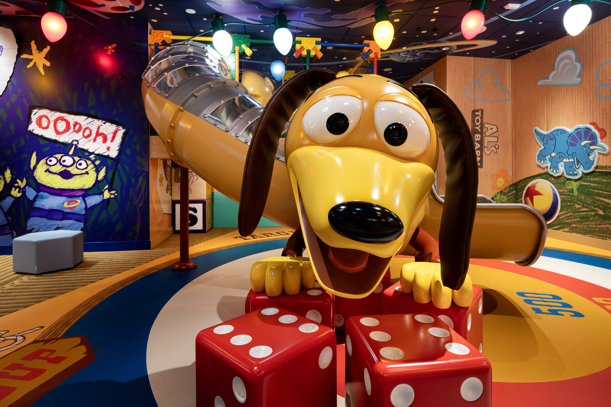 Inside Andy’s Toy Box at Disney’s Oceaneer Club aboard the Disney Adventure, youngsters can expertise the world from the view of their Toy Story friends in an outsized playground that includes a Slinky Dog slide and quite a lot of interactive props, toys and devices.