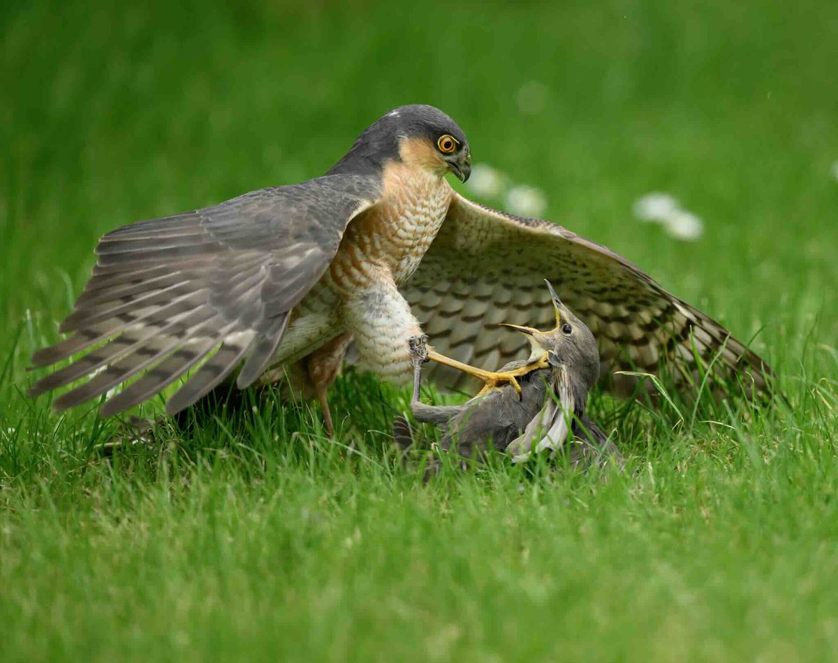 Mark Parker’s dramatic picture captures the second a sparrowhawk pounces on a starling. “Because the sparrowhawk had never gone to ground before on previous visits to the garden and not knowing how long it would stay, I just wanted to get an image to record the event before then concentrating on my settings,” he says. – Mark Parker/British Wildlife Photography Awards
