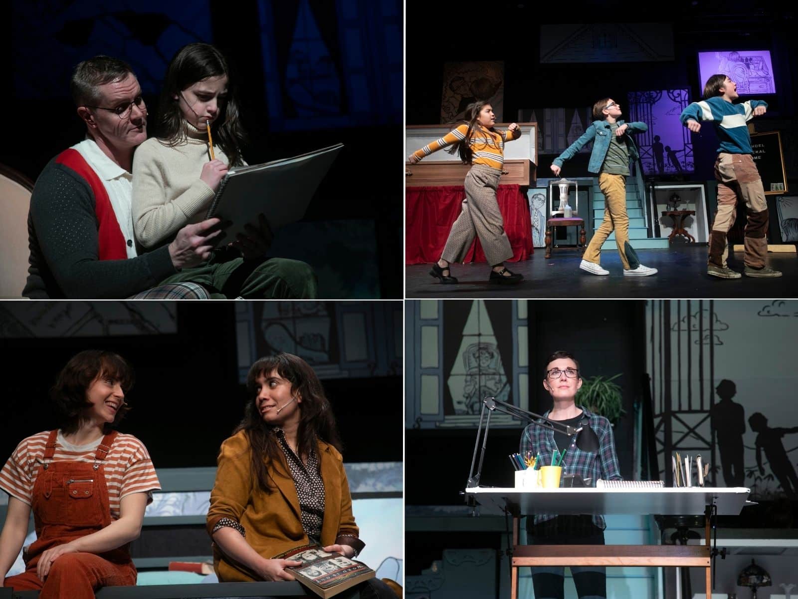 TOP LEFT: Michael McGovern as Bruce and Jules Kanarek as Small Alison; TOP RIGHT: Caroline Anderson as Small Alison, Cooper Johnson as John, and Noah Anderson as Christian; ABOVE LEFT: Kaylee McDonald as Medium Alison and Maria Maclay as Joan; ABOVE RIGHT: Katie Cashin as Alison, in ‘Fun Home.’ Photos by Shealyn Jae Photography.