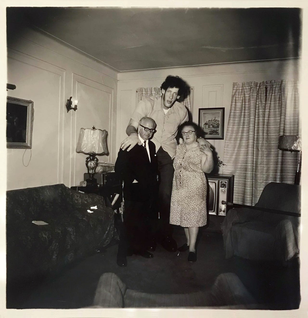 Stand in a room stuffed with Arbus images and watch what occurs. I’ve executed that a couple of instances. People decelerate. They lean in and look intently. The line of viewers strikes so slowly. They discuss to one another in low voices. Not the well mannered murmur of individuals partaking within the act of simply appreciation, however one thing extra, recognition. In entrance of the well-known {photograph} of Eddie Carmel, the “Jewish giant,” together with his dad and mom of their Bronx residence, you hear folks discover the identical factor. He is crouching. Bending himself virtually in half to suit, actually, into his dad and mom’ world. His dad and mom stand bodily leaning in opposition to him. He appears someplace previous the digicam. The room within the {photograph} is small, extraordinary and full of affection. It is a house, nothing greater than a really typical house. These are individuals who wrestle with one thing and proceed to be who they’re, proudly, day by day.