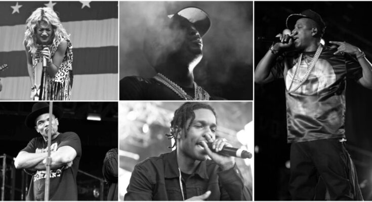 DMC of Run-DMC on the 2012 Made in America Festival. A$AP Rocky on the 2015 Roots Picnic.