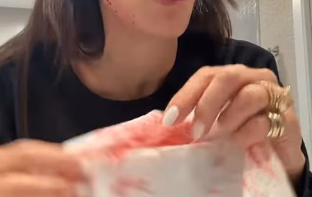 Clutching a blood-soaked wipe to her jaw in a determined try to cease the bleeding, the shaken star gasped: ‘Oh my God, oh my God!’