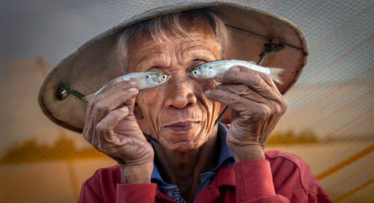 Titled Fish Eyes, the picture carries a delicate humorousness. The fisherman holds the fish in excellent alignment together with his personal eyes, making a putting, symmetrical point of interest that instantly attracts the viewer’s consideration. The title itself is a intelligent visible wordplay, and the fishermen’s playful pose transforms a journey second right into a memorable and now award-winning {photograph}.