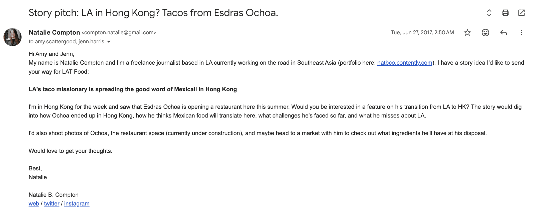 They took my pitch for a thousand-word piece on the hospital food I ate after my big accident, and another on a sous vide cocktail trend I’d noticed. I got paid $150 for each, which felt staggering. It kickstarted a 5-year freelancing relationship with Vice, with my rate eventually increasing to $250 an article.