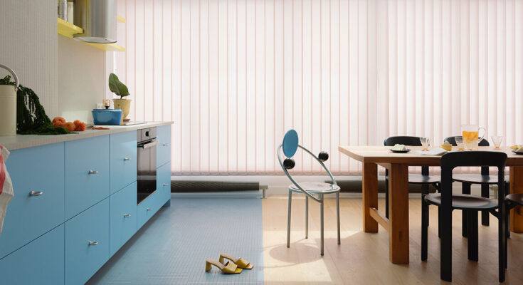 a tiled ground extends the pool-inspired palette into the kitchen space