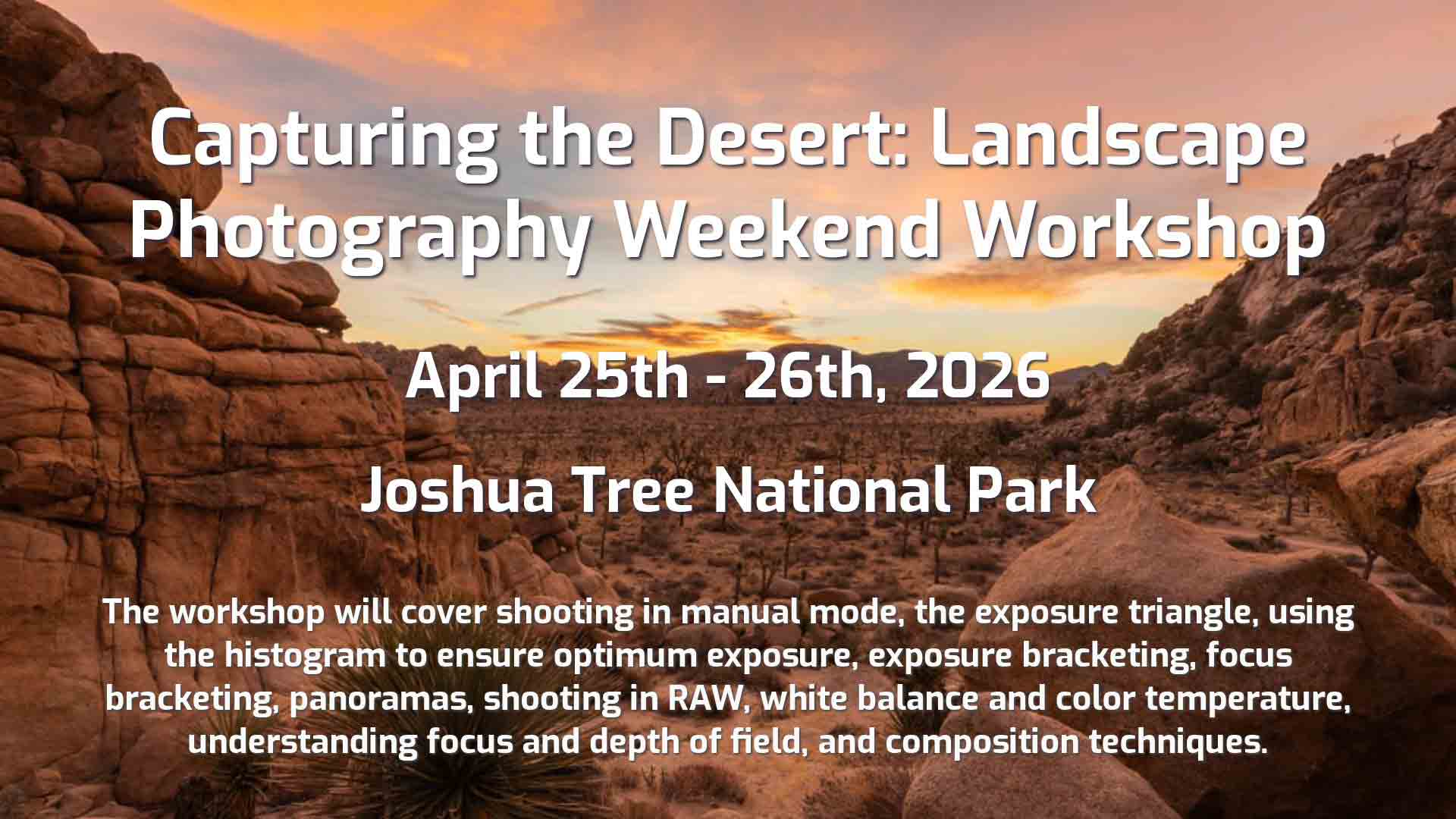 Another optimistic is that I’m delighted to be main the Capturing the Desert: Landscape Photography Weekend Workshop on behalf of the Desert Institute at Joshua Tree National Park Association in April. You’ll discover particulars concerning the workshop beneath.