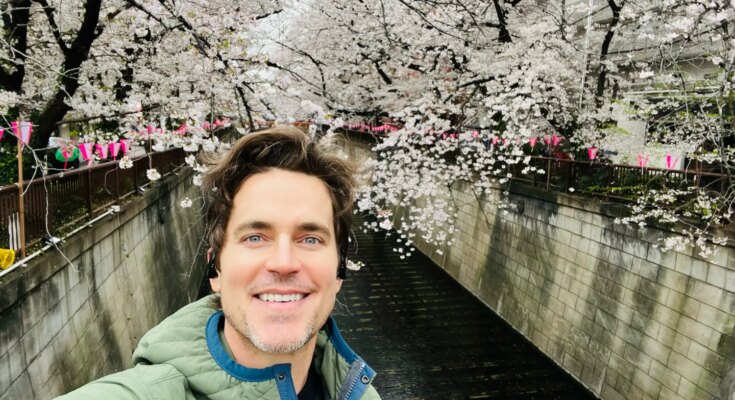 Matt Bomer checked out Sakuragaokacho, a road in Tokyo with LED cherry blossom timber.