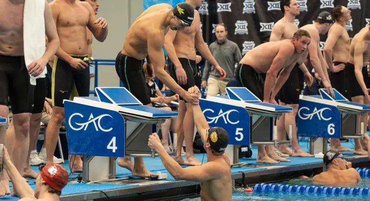 • Men’s 400 free relay – Ilya Kharun, Adam Chaney, Remi Fabiani, Jonny Kulow2:42.15 – NCAA Record, Big 12 Record, Meet Record, School Record