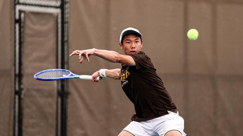 Buffalo tied it up with a 6-3, 6-3 win by Balci over Antonopoulos at No. 2 after which took a 2-1 lead 6-1, 6-2 win by Faiz Nasyam over Davison at No. 6. The remaining 4 matches needed to be determined in three units. Corwin tied the match up at 2-2 with a 1-6, 6-1, 6-4 win at No. 4 over Minjae Kim. The Broncos pushed forward, 3-2, after Chen-Hui Ho picked up a 6-3, 1-6, 6-4 win over Emiliano Jorquera at No. 5. Adesoro then clinched the match victory for the Broncos in a 4-6, 6-4, 6-4 win at No. 1 over Mistakos.