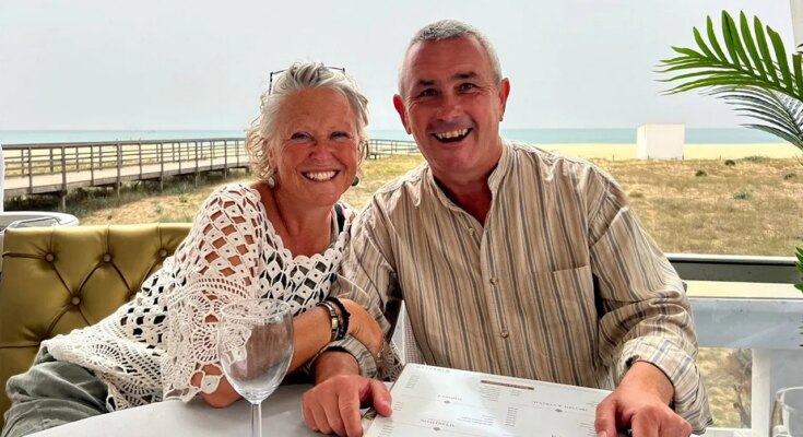 Karen and Myles Davies, pictured right here, left their company gigs behind to journey by Europe in a motorhome for lower than the hire they used to pay. (SWNS)