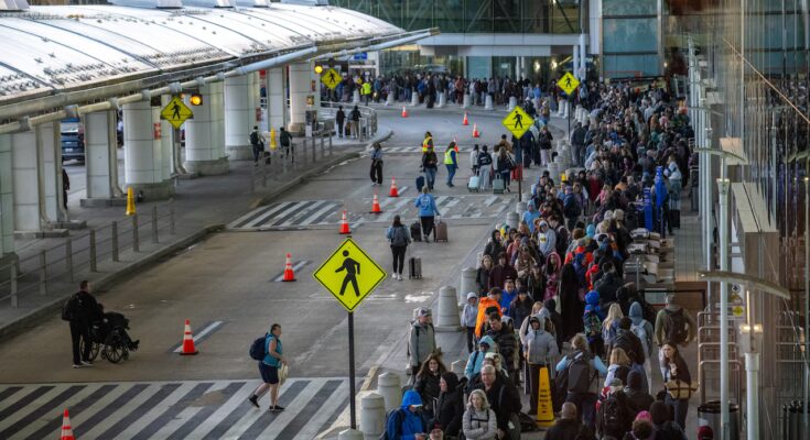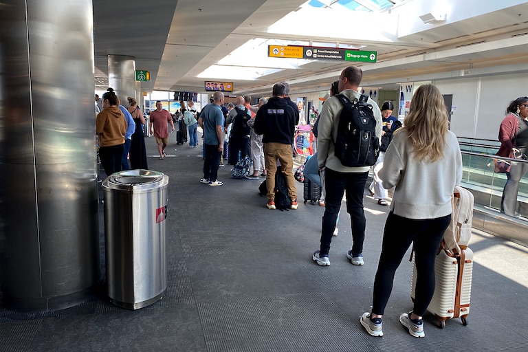 As vacationers entered door 10 simply earlier than 9 a.m., a lady requested, “How long?” It could be one other hour in a line she’d already been in for an hour — a two-hour lengthy line on the sidewalk outdoors of the airport terminal.