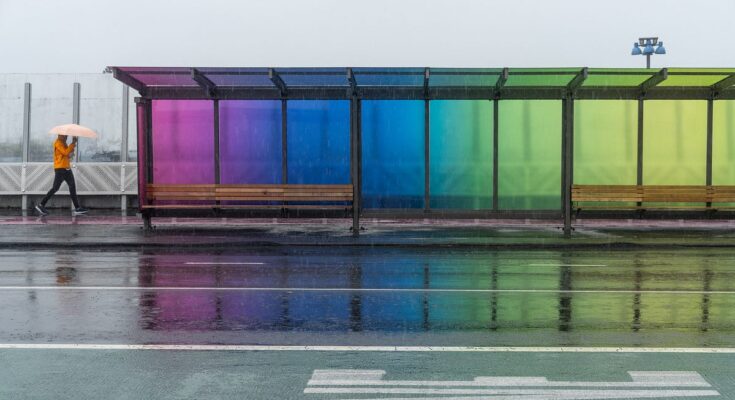 There are 4 rainbow bus shelters on the bridge over a motorway on Karangahape Road in Tāmaki Makaurau Auckland. I’ve usually thought it might be a great place to take photographs within the early morning or late afternoon, after I think about mild from the low solar streaming by way of the colored glass panels. However, on the day I set out, the forecast was for heavy rain and robust winds.