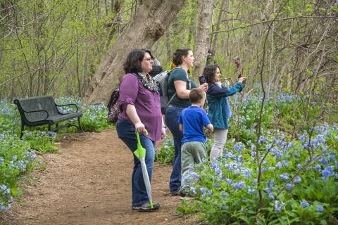Bluebells are a fragile pure useful resource. Visitors are reminded to remain on marked trails and assist protect the great thing about Riverbend Park.