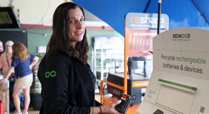 “So rechargeable devices, rechargeable batteries — they can go in there,” mentioned Tricia Dutcher, coverage and client program supervisor for Redwood Materials.