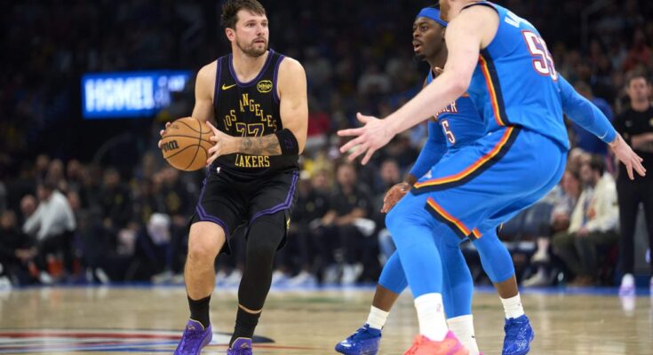 Duffy pointed to 2 video games Dončić missed in Toronto and Boston on Dec. 4 and Dec. 5 to return to Slovenia for the beginning of his second daughter. The Lakers’ star rejoined his crew on Dec. 7 in Philadelphia. Had he performed in each the Toronto and Boston video games, Dončić would’ve performed in 85.7 % of the Lakers’ video games as much as and together with Thursday’s in Oklahoma City — clearing the brink for award eligibility.