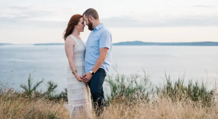 One of the preferred spots for engagement images in Seattle is Discovery Park, fingers down!