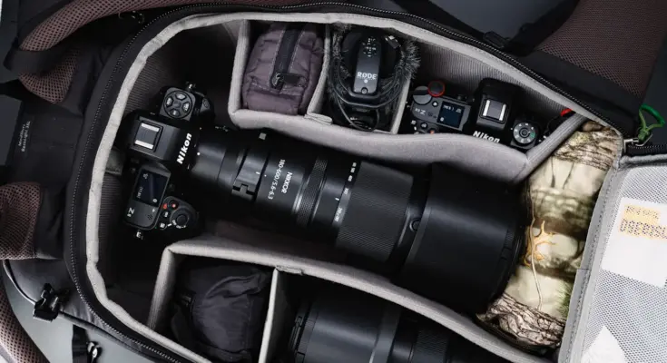 A Thinktank Mindshift Backlight 36 Litre camera bag with a full Nikon Z wildlife photography kit packed inside.