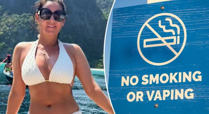Two English holidaymakers had been vaping on a bucolic seaside within the in style vacation spot when authorities approached to inform them their behavior was not simply dangerous for his or her well being and ‘uncool ‘by teenage requirements, however unlawful.
