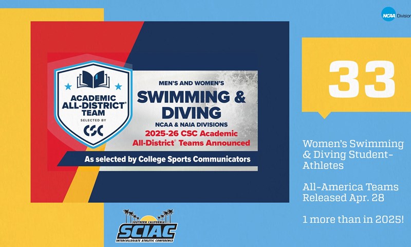 Thirty-three SCIAC girls’s swimming & diving student-athletes have been named Academic All-District by the College Sports Communicators.