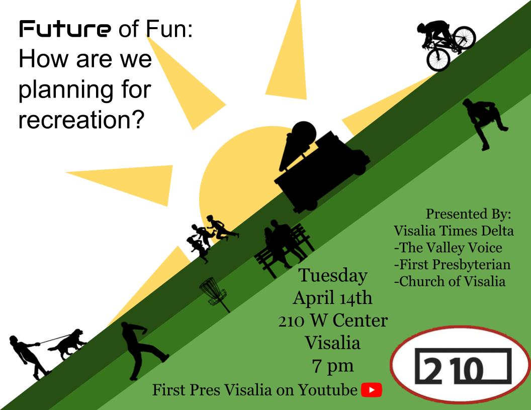 “Future of fun: How are we planning for recreation?” would be the subsequent discussion board offered by Tulare County voices at 2:10. The discussion board is at 7 p.m. on Tuesday April 14 at 210 W. Center Ave.