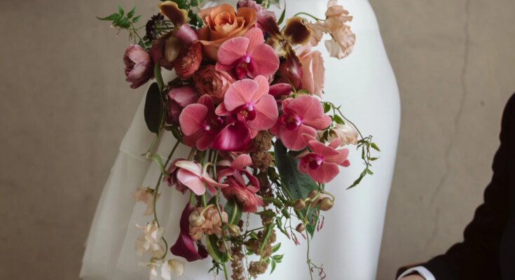 One of my favourite particulars was the bride’s bouquet, or lack of 1, technically. She carried a small orchid purse as an alternative. It felt sculptural and surprising, however nonetheless utterly at residence within the panorama.