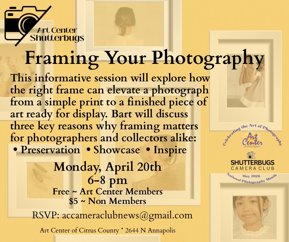 https://artcenterofcitruscounty.org/2026/04/framing-your-photography-presentation-with-bart-stephens-from-the-frame-shop-at-the-art-center-of-citrus-county/