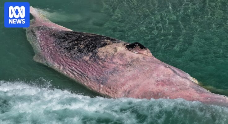 https://www.abc.net.au/news/2026-04-11/decomposing-whale-carcass-relocates-open-water-swim/106537682