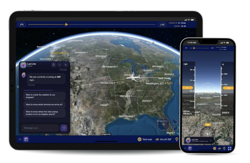FlightPath3D has introduced Luci Live, an AI-powered improve that turns the inflight transferring map right into a extra interactive journey device. It brings real-time, customized options to the map expertise, letting passengers ask questions, discover locations, and make bookings throughout their journey. It shifts in-flight leisure (IFE) from one thing passengers watch to one thing they will work together with.