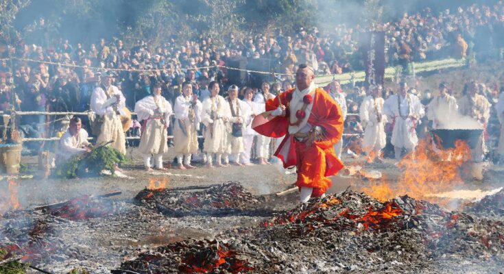 The clattering of bells begins to rise from contained in the temple. Out come two dozen conch shell-blowing monks, their white robes wrapped on the waist with deer pelts. The monks of Takao-san Yakuo-in belong to Shugendo, a sect of esoteric Buddhism that includes parts of mountain worship and Shinto, Japan’s indigenous faith. They’re famend for his or her excessive practices, which embrace meditating in waterfalls, hanging from cliffs by their ankles, and — as is the aim of at the moment’s Hiwatari-sai firewalking competition — strolling on scorching coals.