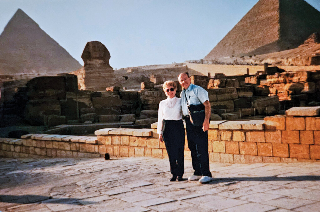 There is a photograph of my grandparents in Egypt, the pyramids casting shadows within the late afternoon solar. My Mémère, in darkish slacks and her signature blonde perm, smiles brightly on the middle, whereas my Pépère sports activities the white sneakers and button-down shirt of an American vacationer. The Great Sphinx looms behind them, the one different face in a panorama dominated by giants. If not for the environment, they may very well be dressed for church, one other aged couple attempting to make the early chicken dinner particular.