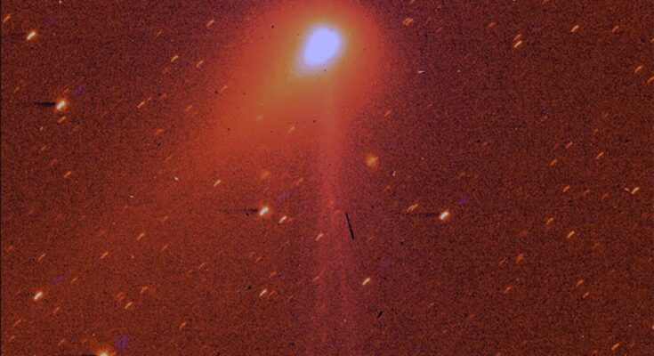 Comets are made up of mud and ice, and after they cross near our Sun, that ice sublimates into vapour, inflicting a fuzzy coma to seem across the comet’s head and a path to comb behind it.
