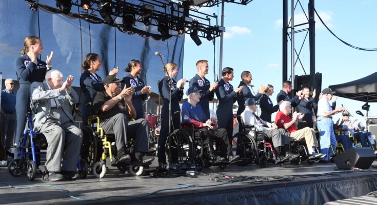 Eight World War II veterans, ranging in age from 98 to 107, have been honored for his or her service to the United States on stage throughout Sun ’n Fun 2026’s opening evening live performance on April 14.