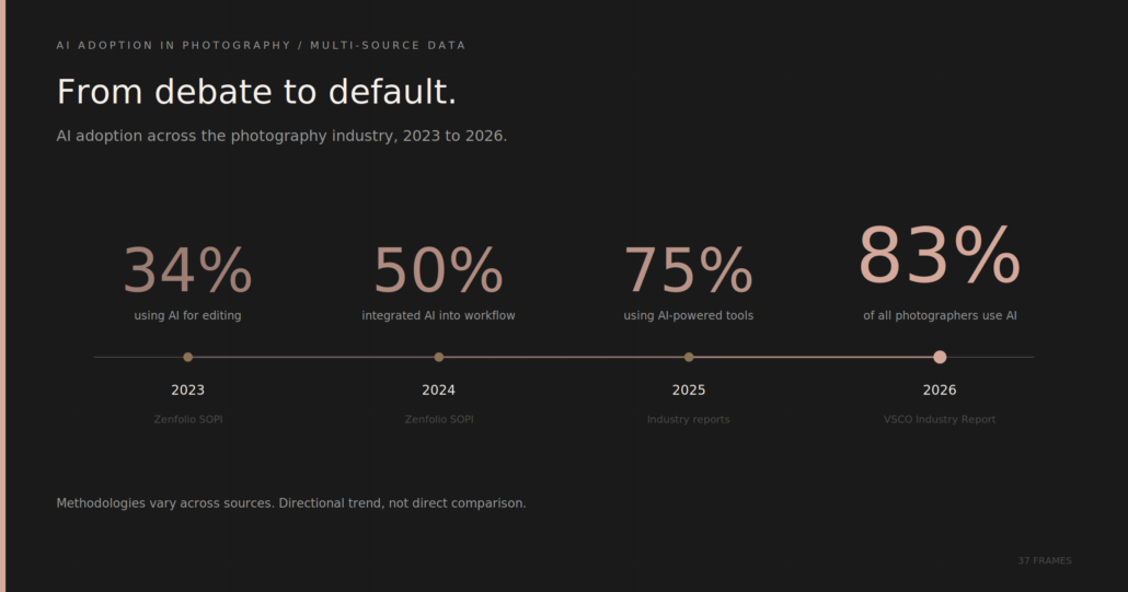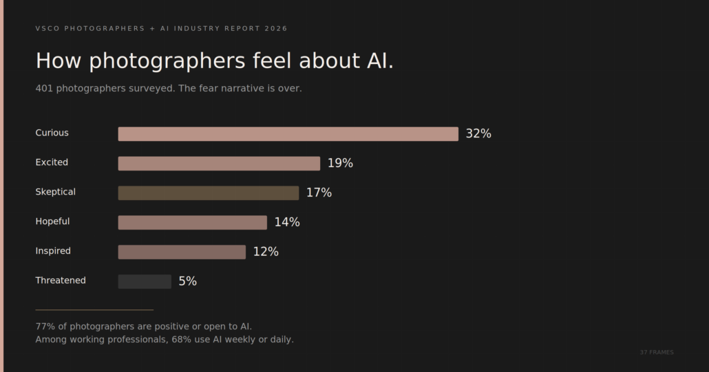 The VSCO Photographers + AI Industry Report, additionally launched not too long ago, surveyed 401 photographers particularly about AI adoption. The findings are clear.