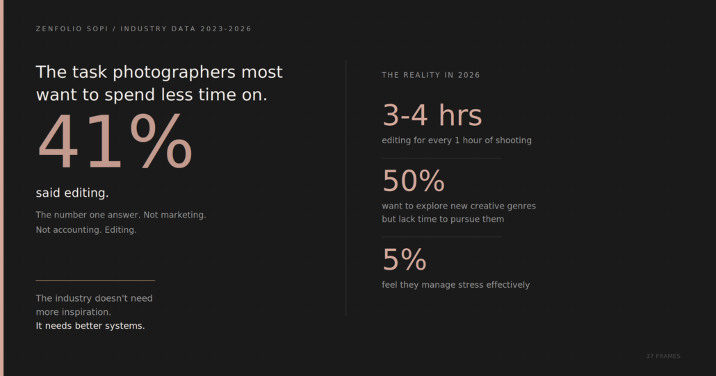 That query has been sitting on the centre of each business report for years. Back within the 2023 Zenfolio survey, 41% of photographers mentioned modifying was the duty they most wished to spend much less time on. It was the primary reply. Not advertising and marketing. Not accounting. Editing.