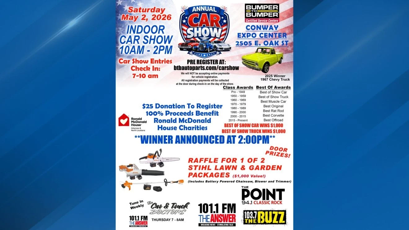 CONWAY, Ark. (KATV) — If you’ve bought a automobile lover within the household or simply need a enjoyable outing that doesn’t rely upon good climate, an enormous indoor automobile present is rolling into Conway subsequent month with a facet of giving again.