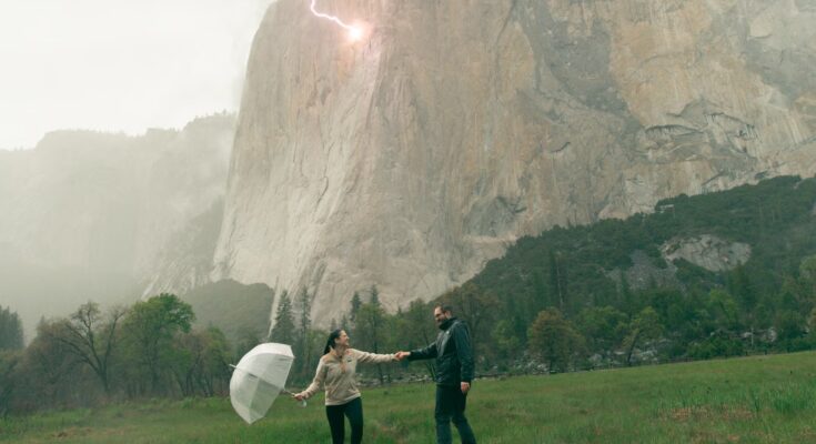 When a pair traveled from Germany so the groom-to-be may pop the query in Yosemite National Park, he wasn’t going to let a grim climate forecast foil his plans. Despite their romantic notions, the pair—and their photographer—battled a torrential downpour, and located themselves on the heart of a superbly timed lightning strike on El Capitan.