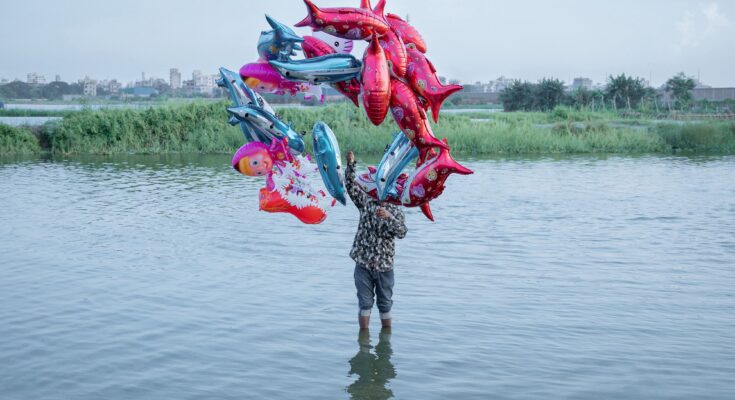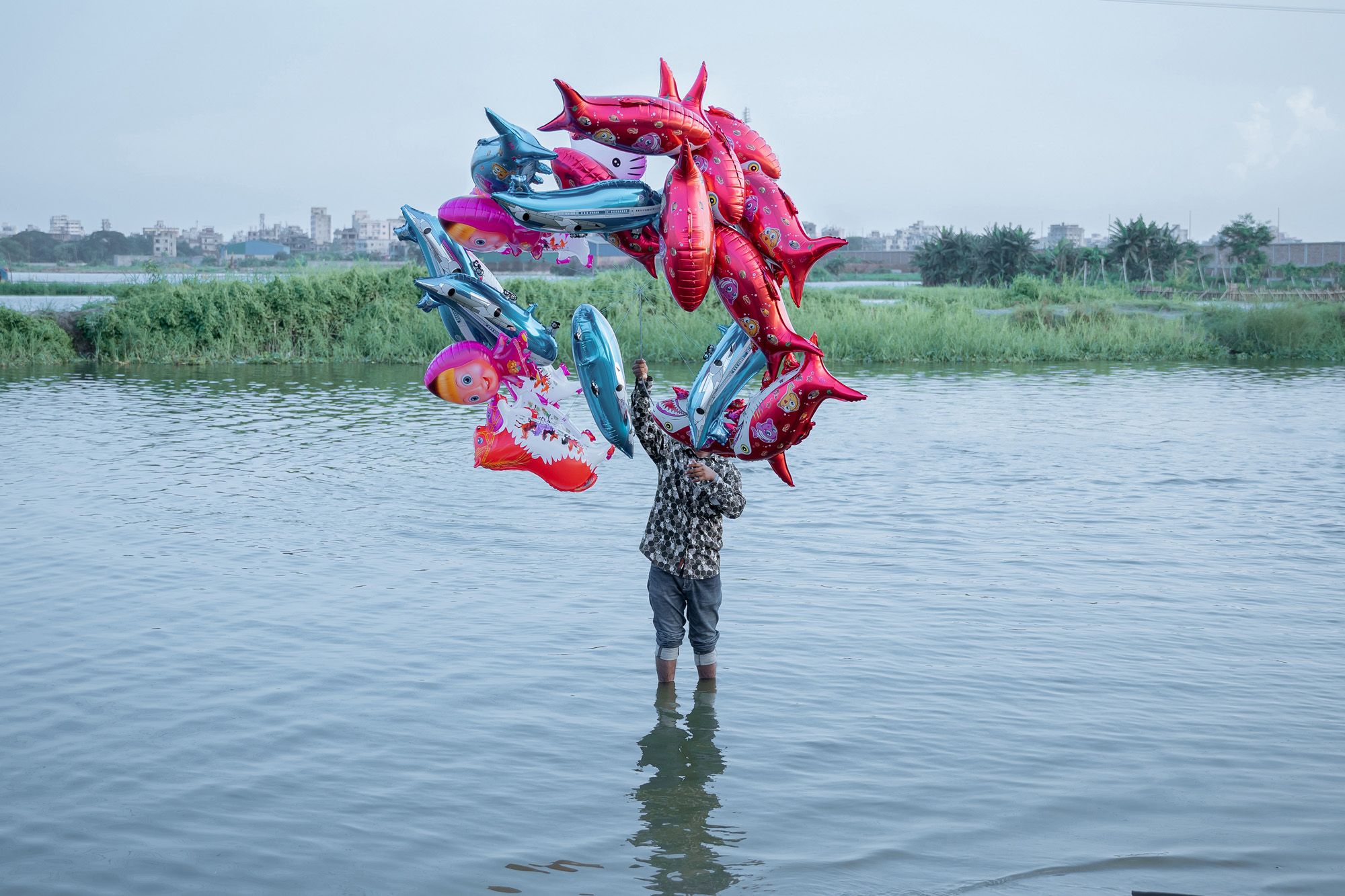 “The fish belong in the river – but the river is gone.” A person who was as soon as a fisherman stands within the remaining shallow water in Dhaka, Bangladesh – now promoting plastic imitations of fish that may now not be caught right here.