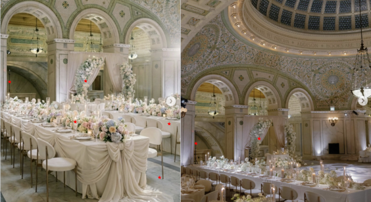 The bride’s palms additionally disappear weirdly within the video the place the rotunda nonetheless doesn’t match the precise venue’s.