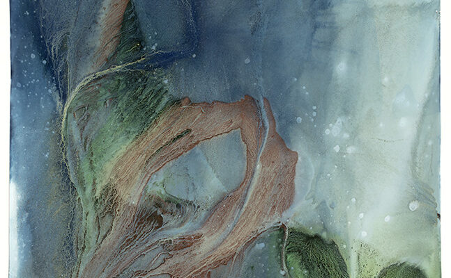 ©Meghann Riepenhoff, Waters of the Americas: EPA #WA3890090076 (Downriver Residue from the Hanford Site, Iris + Mushroom Ink + Alkaline Resist, Columbia River, WA), 2025