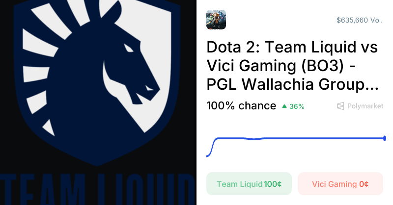This market will resolve to “Team Liquid” if Team Liquid win the match in opposition to Vici Gaming.
