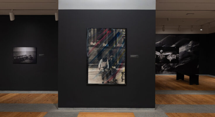 That the “blue” named within the title will not be a chromatic reference turns into much more obvious upon entry into the exhibition. I used to be guided via the exhibition by the PMA’s Judy Glickman Lauder Curator of Photography Anjuli Lebowitz, and instantly greeted by a pink wall and {a photograph} of Smith herself, entitled Self Portrait (1989). Beyond the pink wall’s welcome, one encounters Smith pictures as wallpaper amidst the white and gray partitions that make up the exhibition area. This richness of this palette is explored additional in Smith’s early works. A testomony to her attunement to the ensemble of sunshine and darkish at play in every picture, her incorporation of surprising colours is enhanced by the black and white movie for which she is most well-known. As I moved via the area, I gravitated to the works the place Smith utilized strokes and streams of paint to her pictures. In Leaning Tower of Pisa (1980), a Black man in a leather-based jacket locations an outstretched arm on a column of the tower. His confidence grants the tower, a construction made notorious for its unstable basis, a reprieve from a narrative of compensation. What Smith captures within the {photograph} and within the topic’s cool demeanor, she compounds together with her addition of vibrant streaks of paint. These strains of yellow, blue, purple, crimson, and pink seem as reverberations from the tower. I puzzled to myself in the event that they may be manifestations of the vitality exuding from the person posing throughout the construction. Smith, as photographer-painter, pulled my consideration with pops of shade, however what held my curiosity was the way in which she “paints with the light,” and the moments that entered and escaped illumination.